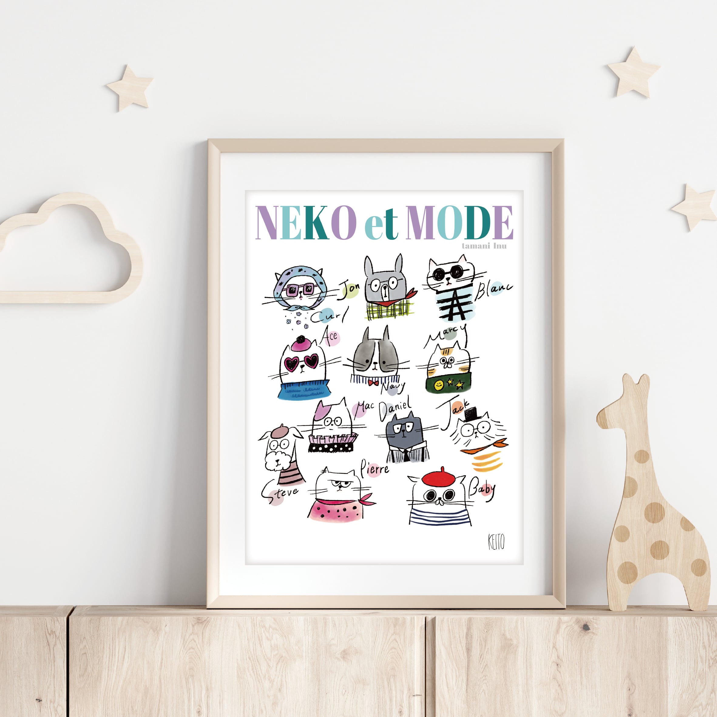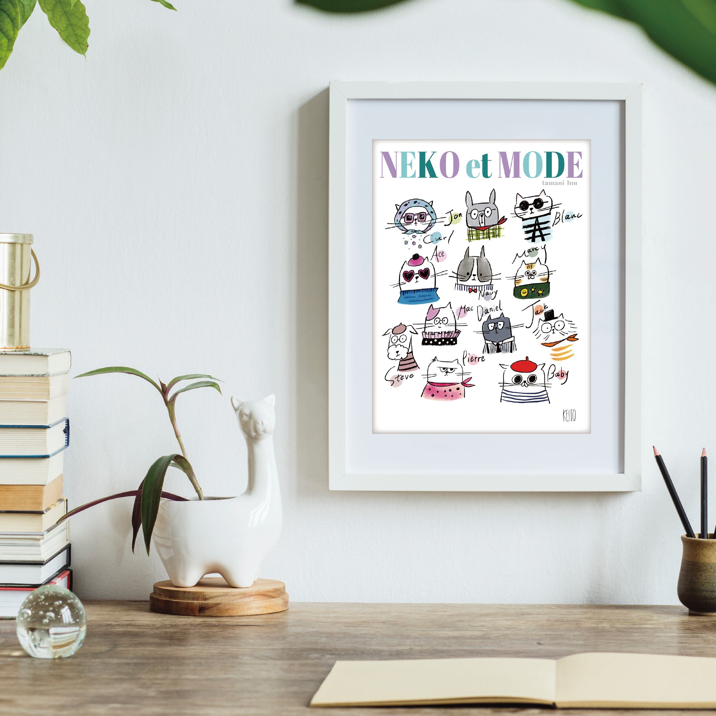 それぞれのファッションを楽しむ猫と犬たちが、お部屋を彩ってくれます。